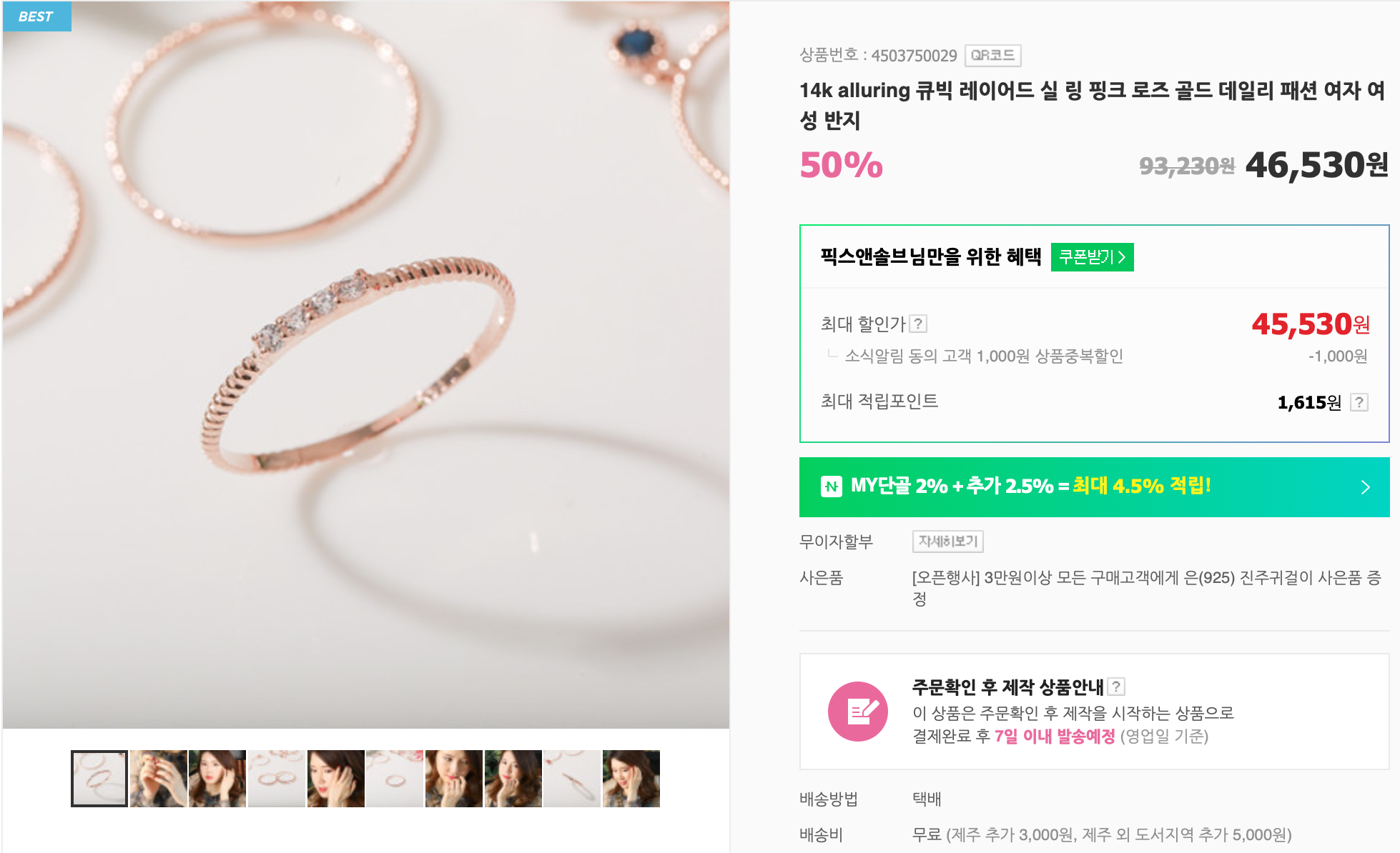 (์ถ๊ฐ 2020/4/16) ํ ๋จธ๋์ ์จ๊ฒจ์ง ์ ์ฐ์ ๋ธ์์ด๋ค ์ค๊ธ๋ฐ์ง๋ก ๋ฐ๊พธ์์ต๋๋ค. 14k ํํฌ ๋ก์ฆ ๊ณจ๋ 13ํธ๋ก ๋๊ฐ ์ฃผ๋ฌธํ์ต๋๋ค.