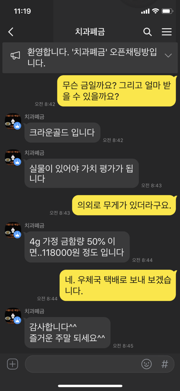 100์์ง๋ฆฌ ๋์ ๊ณผ ๋น๊ตํ ํ๊ธ ์ฌ์ง๊ณผ 4g ์ ๋ ๋๋ค๋ ์ ๋ณด๋ฅผ ๋๋ฆฌ๊ณ ๋ฌด์จ ๊ธ์ด๋ ๋ฌธ์ํ๋๋.. ํฌ๋ผ์ด ๊ณจ๋๋ผ๊ณ ํ์๋ค์. ๊ฐ๊ฒฉ๋ 4g, 50% ํจ๋ ๊ฐ์ ์ 118000์์ด๋ผ๊ณ ํ๋.. ๊ฝค ๊ด์ฐฎ์ ๋ฏ ํฉ๋๋ค. ์ด ์ ์ฒด์ ์ฐ์ฒด๊ตญ ํตํด ๋งค์ ํด ๋ณผ๋ ค๊ตฌ์. ๊ธ ํจ๋๊ณผ ํผํฉ๋ ๊ธ์์ ์ข ๋ฅ์ ๋ฐ๋ผ ํ๊ธ์ ๋ค์ํ๊ฒ ๋ถ๋ฅํ๋๋ฐ.. ์๋ง ๋น๊น์ ๋ณด๋ฉด ์ฝ๊ฒ ์ ์ ์๋ ๋ฏ ํฉ๋๋ค. ํฌ๋ผ์ด ๊ณจ๋๋ ๋๋ต 50% ์ ๋ ํจ๋์ธ ๋ฏ ํฉ๋๋ค.