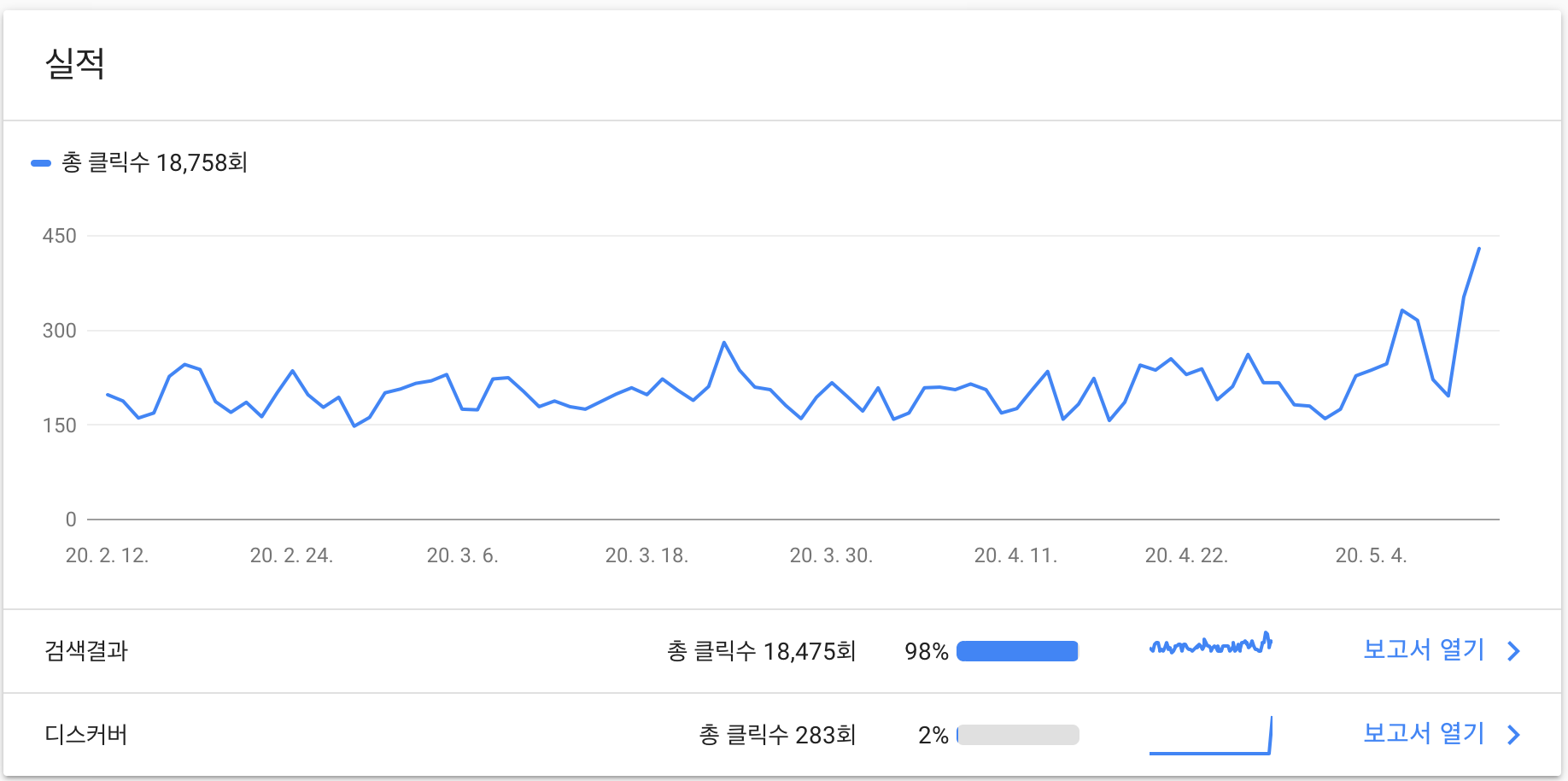 ๊ธ ์ฌ๋ฆฐ์ง 3์ผ์ด ์ง๋๊ณ ๊ตฌ๊ธ ์์น ์ฝ์ (Google Search Console) ์ ๋ค์ด๊ฐ ๋ณด๋ ๊ทธ๋์ ๋ณด์ด์ง ์๋ ๋์ค์ปค๋ฒ ์ค์ ๊ฒฐ๊ณผ๊ฐ ๋ํ๋ฌ์ต๋๋ค. ์ดํ๋์ 283ํ ํด๋ฆญ์ด ์ด๋ฃจ์ด์ก๋ค๊ณ ๋์ค๋ค์. ๊ฐ๋ ๋ธ๋ก๊ทธ ๊ธ์ด ๋ค์ ๋ฉ์ธ์ ๋ ธ์ถ๋์๋ค๋ ๊ธ์ ๋ดค์๋๋ฐ.. ๊ตฌ๊ธ ๋ฉ์ธ์ ๋ ธ์ถ๋ ๊ฒฝ์ฐ๋ ์ฒจ ๋ณด๋ ๊ฒ ๊ฐ์ต๋๋ค. ์ฃผ๋ก ๊ณต์ ๋ ฅ ์๋ ์ ๋ฌธ๊ธฐ์ฌ๋ค์ด ๋ ธ์ถ๋๋๋ฐ.. ์ ๋ธ๋ก๊ทธ ๊ณต์ ๋ ฅ์ด ์ฌ๋ผ๊ฐ๋ค๋ ์๋ฆฌ์ผ๊น์? ์ต๊ทผ ๊ตฌ๊ธ ์ ์ฑ ์ด ์ด์ง ๋ฐ๋ ํํ์ ๋ณธ ๊ฒ์ผ๊น์? ์๋ฌดํผ ๊ตฌ๊ธ์ด ์ข๊ฒ ํ๊ฐํด ์ฃผ๋ ๊ฒ ๊ฐ์ ๊ธฐ์๊ธฐ ๊ทธ์ง ์์ต๋๋ค.