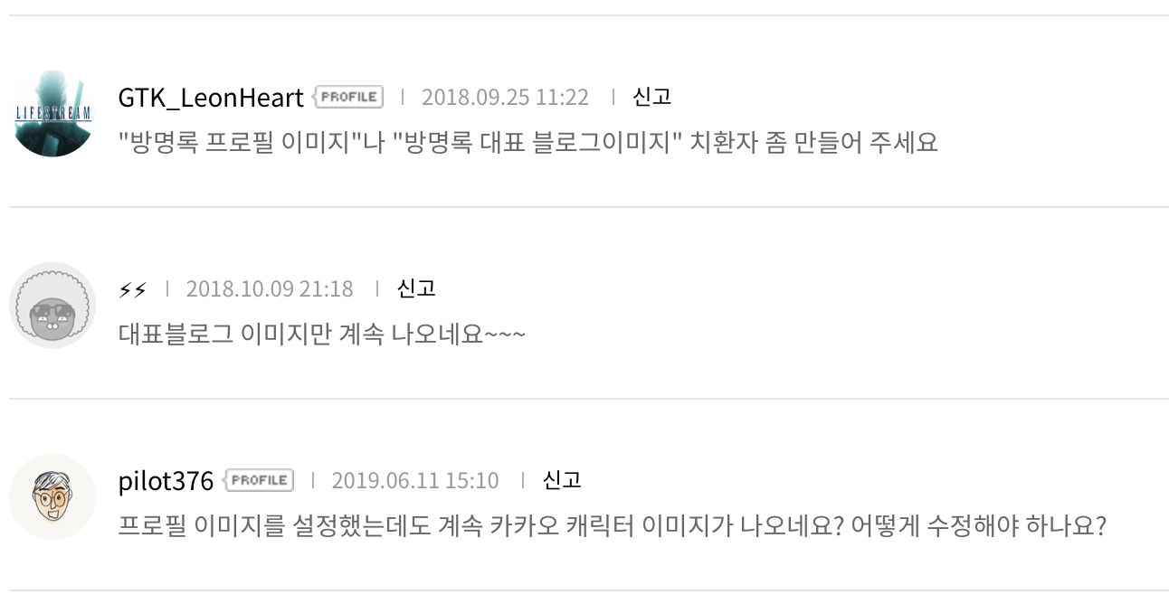 ์๋ง 2017๋ ํฐ์คํ ๋ฆฌ ์ธก์์ ๊ฐ์ฑ์ ํํํ๊ธฐ ์ํด ํ๋กํ ์ด๋ฏธ์ง๋ฅผ ๋์ ํ๋ฉด์ ๋ฐฉ๋ช ๋ก ๋ถ๋ถ์ ๋ฒ๊ทธ๋ฅผ ์ธ์งํ์ง ๋ชปํ ๊ฒ ๊ฐ์ต๋๋ค. ์ดํ ์ฌ๋ฌ๋ถ๋ค์ด ๋ฌธ์ ๋ฅผ ์ธ์งํ๊ณ ์์ ์ ์์ฒญํ์ผ๋.. ๋ฌธ์ ๋ฅผ ํด๊ฒฐํ ์ค ์๋ ํฐ์คํ ๋ฆฌ ๊ฐ๋ฐ์๊ฐ ๋ฐ๋์๋์ง ํฐ์คํ ๋ฆฌ ์ธก์์ ๋ฑํ ํด๊ฒฐํด ๋ฌ๋ผ๋ ๋ฉ์ธ์ง์ ๋์์ ํ์ง ์์์ต๋๋ค. notice.tistory.com/2398#comment15310903