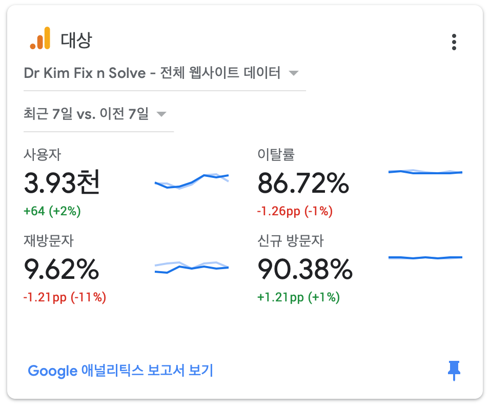 ์ด์์ ๋ค๊ฐ์ง ์งํ๊ฐ ์ค์ํ๊ธฐ ๋๋ฌธ์ ์ ๋์ผ์ค ํ์ ๋ค์ด๊ฐ ๋ณด๋ฉด ๊ด๋ จ ํต๊ณ๋ฅผ ๊ตฌ๊ธ ์ ๋๋ฆฌํฑ์ค์์ ๊ฐ์ง๊ณ ์์ ์ฒซ๋ฒ์งธ๋ก ๋ณด์ฌ์ค๋๋ค. ์ธ์ ์๊ฐ์ ๊ตฌ๊ธ ์ ๋๋ฆฌํฑ์ค์ ๊ฐ๋ฉด ๋ณผ ์ ์์ต๋๋ค. ์๋๋ ์ง๋ ์ฃผ์ ๋น๊ตํ ์ด๋ฒ ์ฃผ ์ ๋ธ๋ก๊ทธ์ ์ฑ์ ํ์ ๋๋ค.