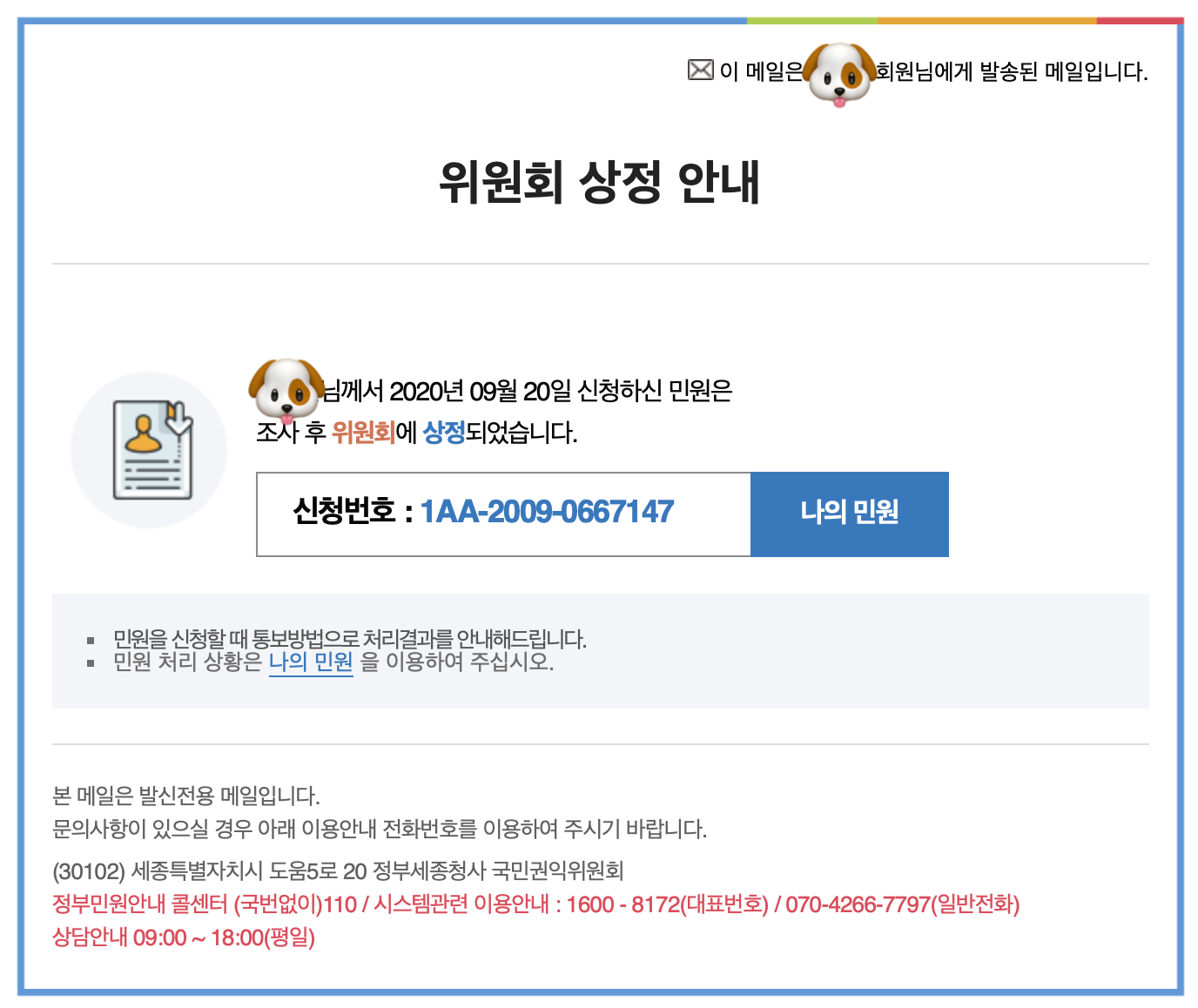 (์ถ๊ฐ 2020/9/28) ์ ํด๋น ๋ฏผ์์ ๊ตญ๋ฏผ๊ถ์ต์์ํ์ ์ ์ ์๋์ด ์กฐ์ฌ ์ค์ ์์ต๋๋ค. ๋ต๋ณ ๊ธฐํ์ด 2020๋ 12์ 18์ผ๋ก์ ๋ฌด๋ ค 90 ์ผ ์ ๋ ๊ณ ๋ฏผํ์๋ ๊ฒ ๊ฐ์ต๋๋ค. ์ ๋ถ์์ ์ค๋ ๊ธฐ๊ฐ ๊ณ ๋ฏผํด ์ฃผ์๋ ๋งํผ ์ข์ ๊ฒฐ๊ณผ๋ก ์ด์ด์ง๊ธฐ๋ฅผ ๋ฐ๋ ๋ด ๋๋ค.