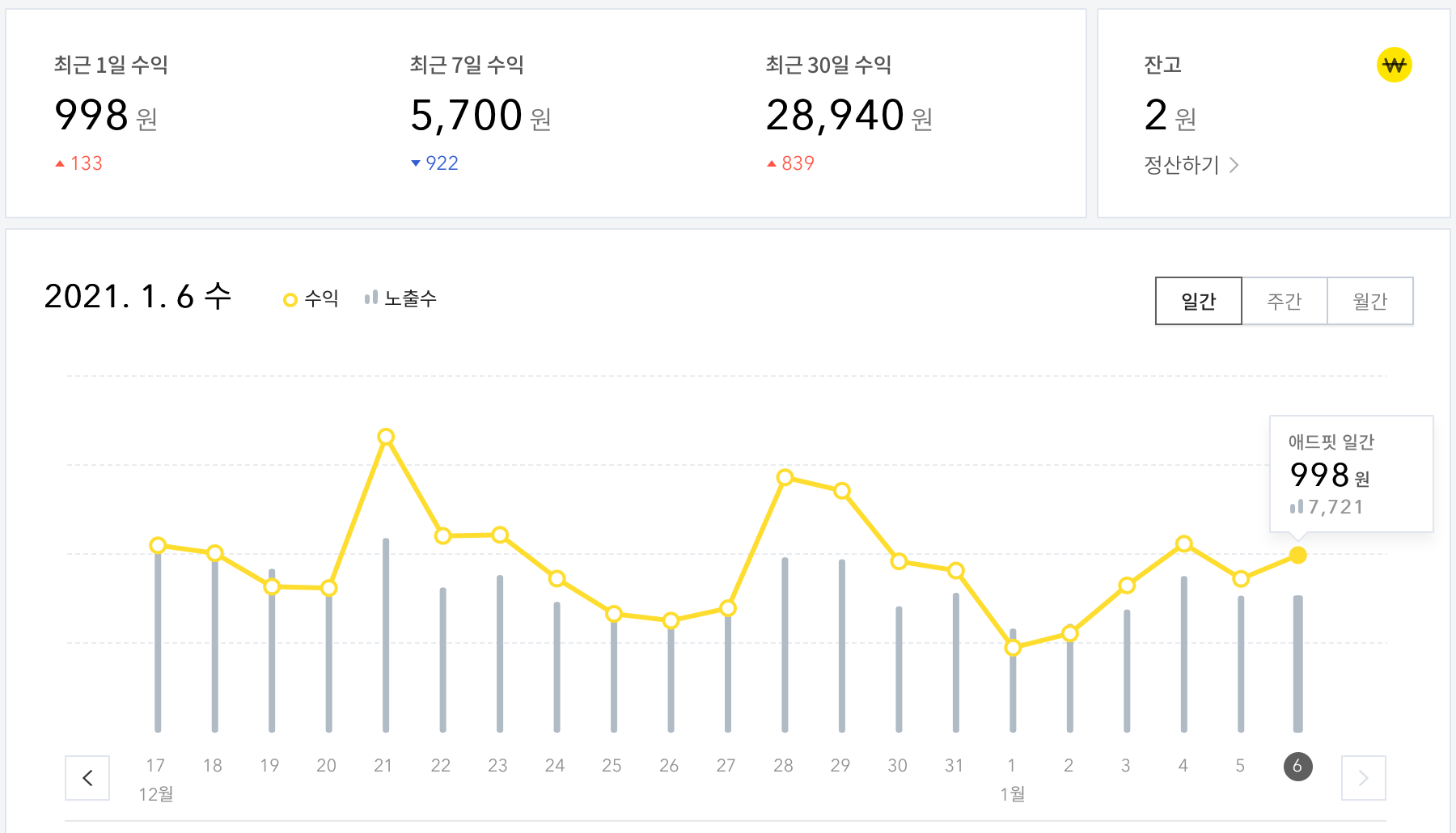 ํฐ์คํ ๋ฆฌ ์ ๋ํ AdFit ์์ต ๊ทน๋ํํ๊ธฐ - ์ฒ๊ธฐ๋์ค?