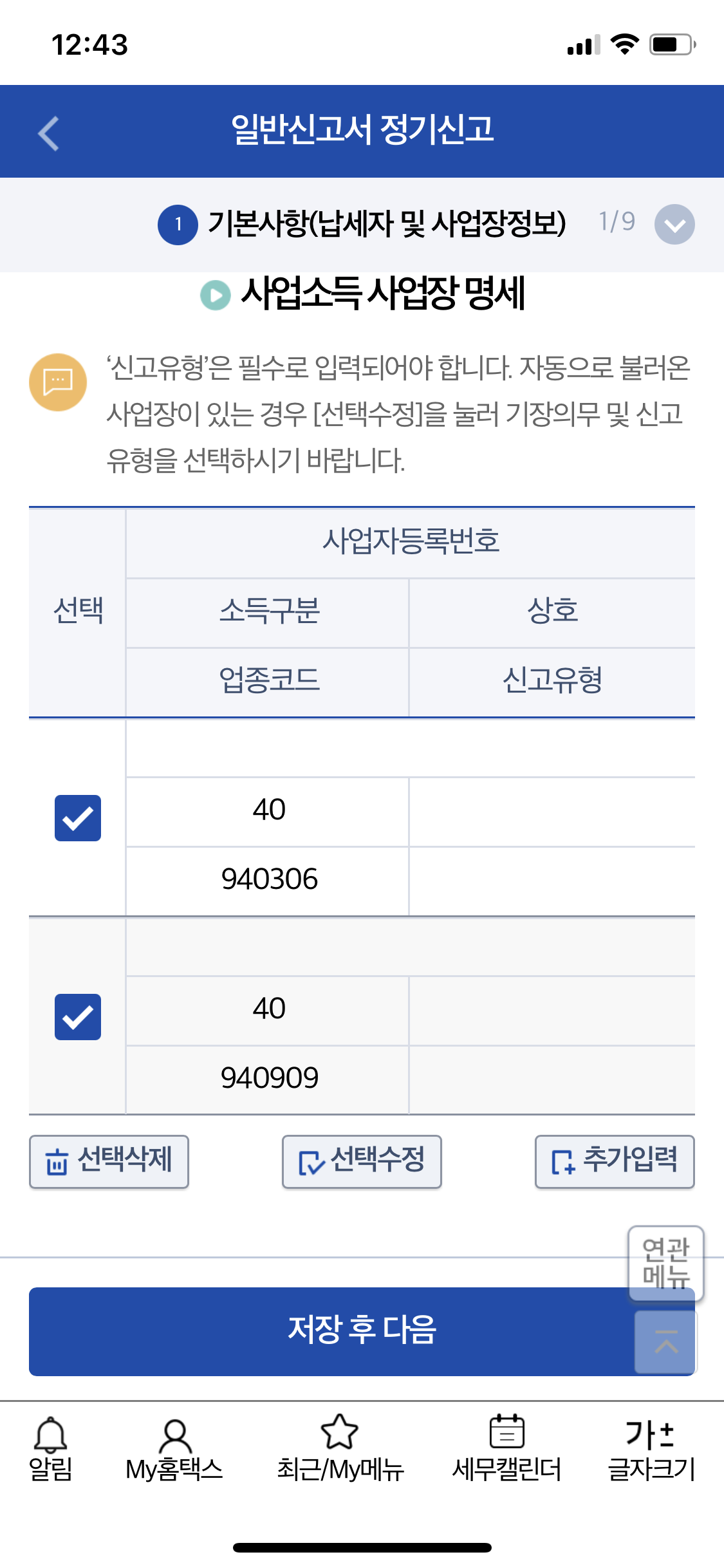 ์ ํ๋ธ๋ ์ ๋์ผ์ค ์๋์ ์์ฒ์๋์ผ๋ก ์กํ์ง ์์ผ๋ 940306 ์ ์ข ์ผ๋ก ํด์ ์ฌ์ ์ฅํํฉ์ ๊ณ ๋ด์ญ์ผ๋ก ์ก์์ผ ํ ๊ฒ ๊ฐ๊ณ , ์์ฒ์ง์ ์ฌ์ ์ (์นด์นด์ค, ์ฟ ํก, ๋ฐ์ด๋ธ ๋ฑ) ์๋์ ๊ฒฝ์ฐ์ 940909 ์ ์ข (๊ธฐํ ์์์ )์ผ๋ก ๊ตญ์ธ์ฒญ์ ์๋ ์ ๊ณ ๋๋ ๊ฒ ๊ฐ์ต๋๋ค.