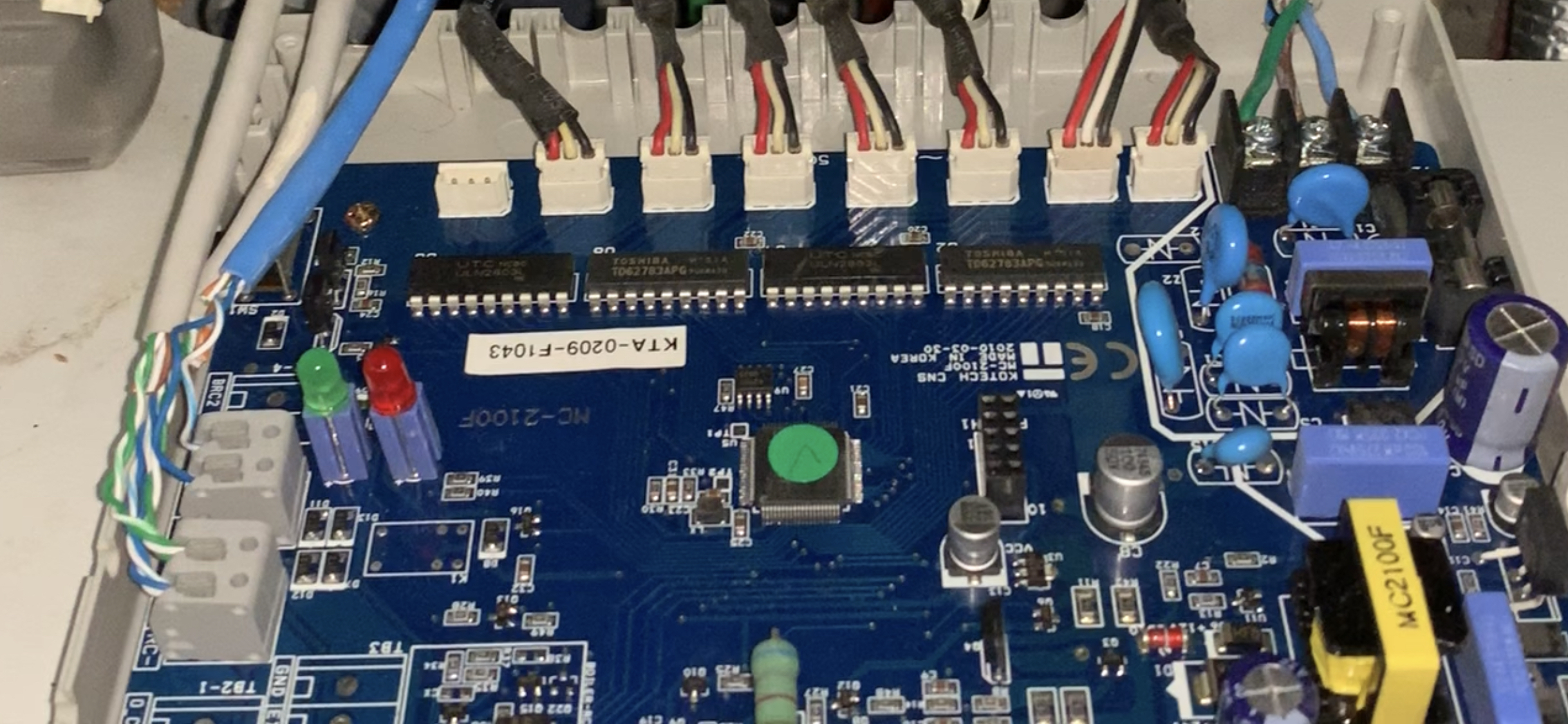 ๊ตํํ๋ค ๋ณด๋ ์ ์ ์์ ํ๋ ๋ฐธ๋ธ์ ์ด ์์ (์ฝํ MC-2100) ๋ด๋ถ๋ ์ดํด๋ณด๊ฒ ๋์์ต๋๋ค. ๋ง์ ์ฃผ๋ณ ๊ธฐ๊ธฐ๋ค์ ์ ์ดํ๋ ์ปดํจํฐ ๊ฐ์ ์ฅ๋น์ธ๋ฐ.. ์จ๋์กฐ์ ๊ธฐ, ์ ๋๊ตฌ๋๊ธฐ, ๊ทธ๋ฆฌ๊ณ ๊ฑฐ์ค ์ธ๋๋จ๋ง๊ธฐ์ RS485 ํต์ ํ๊ณ ์๋ ์ฅ๋น์ ๋๋ค. ๋ด๋ถ๋ฅผ ์ดํด ๋ณด๋ฉด ๊ฐ ๊ธฐ๊ธฐ๋ค๊ณผ ํต์ ํ๊ณ ์๋ ๋ถ๋ถ๋ค์ ๋ณผ ์ ์์ต๋๋ค.