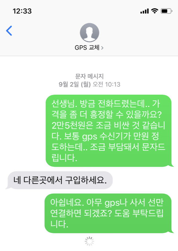 9์ ์ด ์ ๋์ ๋ค์ ์ดํด๋ณด๋ ๊ทธ๋์ ๋ช๋ช ๋ด๋น ์ ์๋ค์ด ํด๊ฒฐ๋ฒ์ ์ฐพ์ ์จ๋ผ์ธ์ ํฌ์คํ ํด ๋์์ต๋๋ค. ์ ํํ๊ฑฐ๋ ๊ธ์ ๋จ๊ฒจ ์ ๋ณด๋ฅผ ์ป์ผ๋ ค ํด ๋ณด์์ง๋ง ๋๋ถ๋ถ ๊ฑฐ์ก์ (15๋ง์? ์ฅ๋์ด์๊ฒ ์ฃ ?) ์๋ฆฌ๋น๋ฅผ ์๊ตฌํ๊ฑฐ๋ ์ ๋ณด๋ฅผ ๊ณต๊ฐํ ์ ์๋ค๊ณ ๊ฑฐ์ ํ์ต๋๋ค. ๊ทธ ์ค์ ํ ๋ด๋น ์ ์ฒด ๋ธ๋ก๊ทธ์์๋ ์ ํํ๊ฒ ํธํ๋๋ ์ ํ์ ์ทจ๊ธํ๋ค๊ณ ๋์ด ์๊ณ , ๊ฐ๊ฒฉ์ ํ์ธํด ๋ณด๋ 2๋ง5์ฒ์์ ํ๋ฐฐ๋น 3์ฒ์์ ์๊ตฌํ์ต๋๋ค. ์ต์ GPS ๋ชจ๋์ ์๋ฆฌ ๋ฑ์์ ๊ฒ์ํด ๋ณด๋ฉด ๋๋ต 10๋ถ ์ ๋์ธ๋ฐ 2๋ง5์ฒ์์ ์กฐ๊ธ ๋น์ผ ๋ฏํ์ฌ ์ผ๋จ ์ค๊ตญ์ฐ ์ ํ์ ์๋ํด ๋ณด๊ธฐ๋ก ํ์ต๋๋ค (์๋ ๋ฌธ์๋ํ ์ฐธ์กฐ). ๋ถํ์ ์ฃผ๋ฌธํ๊ณ ๊ฑฐ์ ํ๋ฌ์ด ๊ฑธ๋ ค GPS ๋ชจ๋์ด ๋ฐฐ๋ฌ๋์์ต๋๋ค. ๊ฐ๊ฒฉ์ ํ๋ฐฐ ํฌํจ 7์ฒ์.